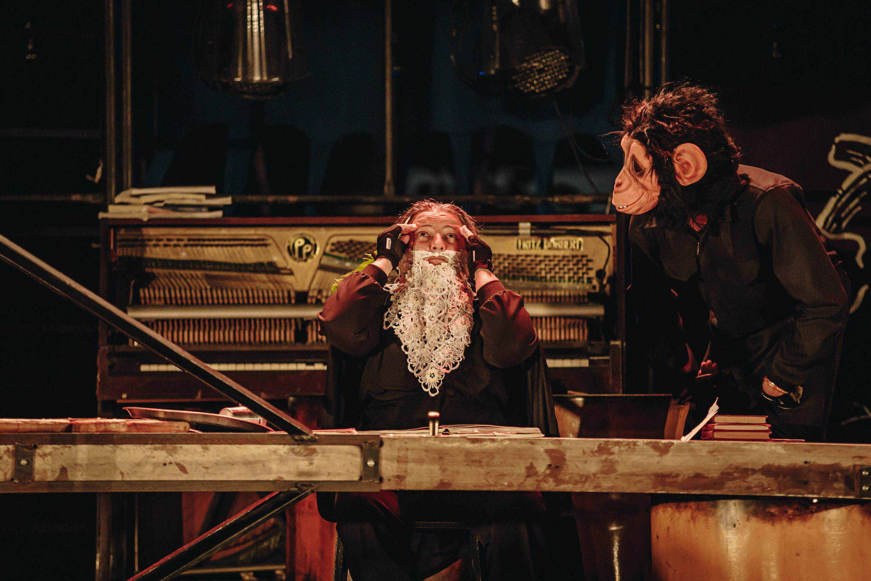 Inspirado na vida e na obra do pesquisador e naturalista Charles Robert Darwin, SINAPSE DARWIN remonta sua história de forma inusitada. A linha narrativa, extrapolando os ditames da realidade, se faz livre nos caminhos imprevisíveis de um pensamento engenhoso. Nessa trajetória, fatos icônicos da vida do cientista como nascimento, formação e jornada, são espelhados e transfigurados por sua memória inquieta e, por vezes, inventiva. Requisitando a imaginação, elementos de suas teorias contidas em “A Origem das Espécies”, vão sendo gradualmente revelados a partir do olhar cotidiano, percebendo o que outros não foram capazes de enxergar. Para realização da proposta cênica, toda uma estrutura precisou ser criada e construída. SINAPSE DARWIN, ao evocar regiões lúdica e instáveis do próprio pensamento, o faz com engenhosidade, se utilizando de catracas, roldanas, equipamentos eletrônicos e sintetizadores. Apesar da obra ser uma homenagem a história e a ciência, o faz evocando a condição mítica do teatro.
